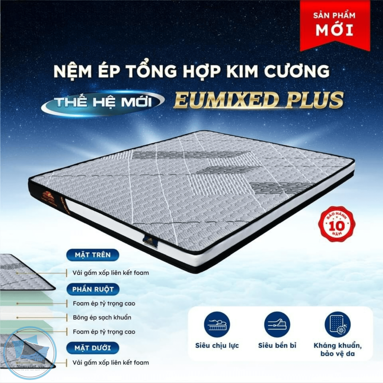 Nệm Cao Su Ép Tổng Hợp Kim Cương Thế Hệ Mới – Eumixed Plus